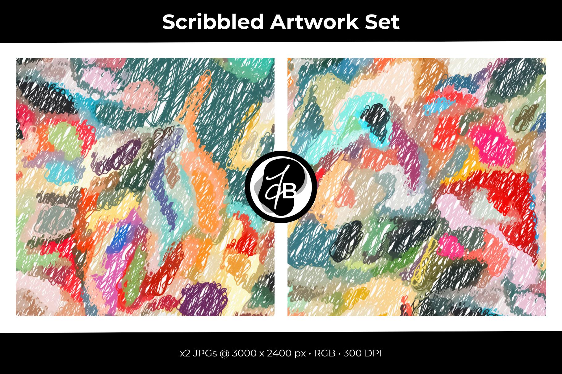 Scribbled Art 2 - Playful Vibrant Artwork Set / x2 Images